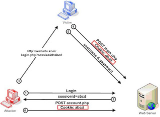 • Session token in the URL argument: The Session ID is sent to the victim in a hyperlink and the victim accesses the site through the malicious URL.